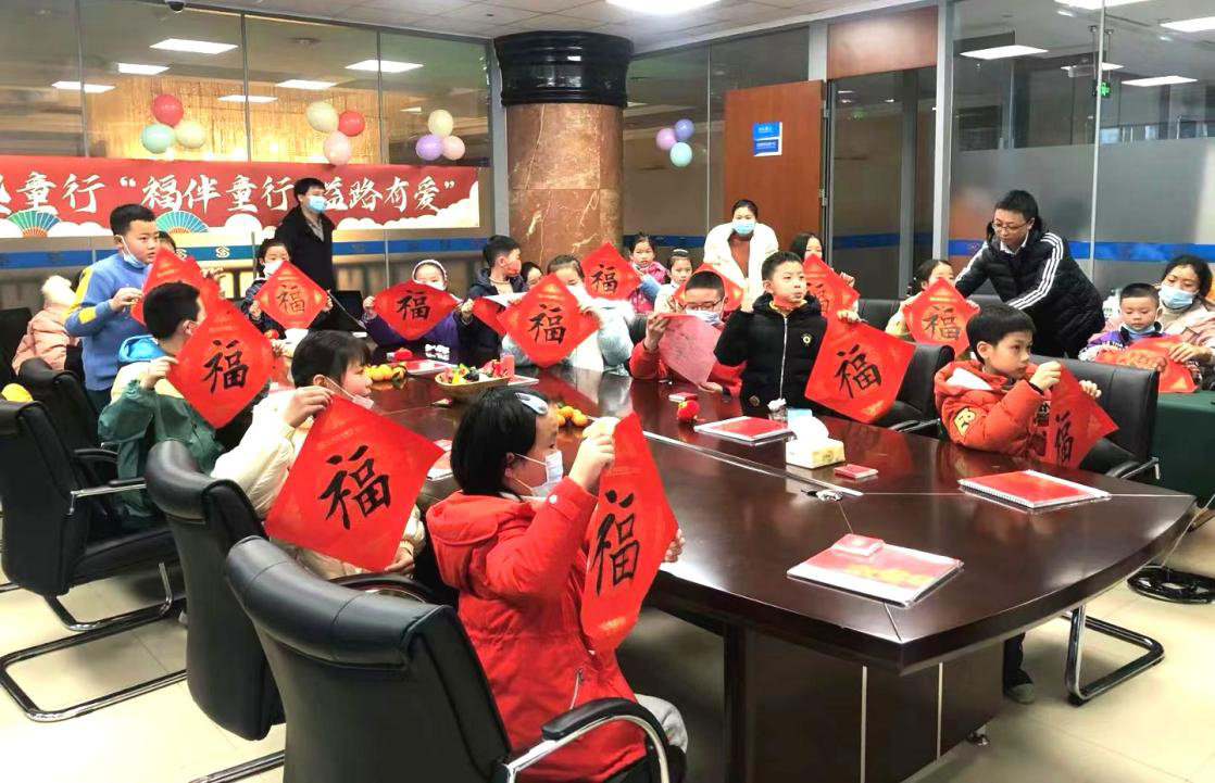 此外,今年1月该行还联合中国儿童少年基金会开展“福伴童行,益路有爱”亲子公益活动,现场来自书法家协会的老师详细讲解了“福”文化的内涵及不同书法字体中“福”字的书写方式,小朋友在家长的陪伴下挥毫泼墨、大显身手。“写福字,迎新春”、制作“虎头帽”,小朋友们学习传统民俗文化的同时,还将自己书写的“福”字,送给了社区、街道办事处的基层工作人员。