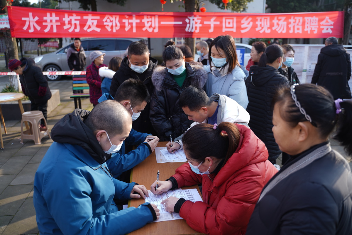 这是水井坊响应邛崃市2022年“春风行动”主题系列活动所举办的一场返乡务工人员社区招聘活动,此次招聘会共提供包括窖池技术员、曲酒自动化操作技术员、中级质检技术员等在内的380个就业岗位,将为即将竣工的四川省重点建设项目水井坊邛崃全产业链生产基地进行人才储备。