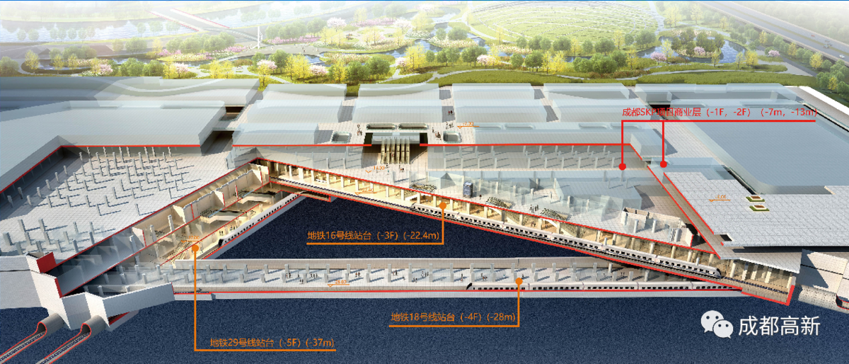 据四川在线记者早前报道,成都SKP建成后将拥有1000多个知名百货品牌,其中涵盖多个首店品牌,一线品牌覆盖率达98%。项目基地范围内有地铁16、18、29三条地铁线换乘车站,遵循TOD建设开发理念,将地面公园与地下商业融为一体,建成后将成为集高端商业零售、优美景观风貌、便捷地铁换乘于一体的公园城市高端商业综合体。