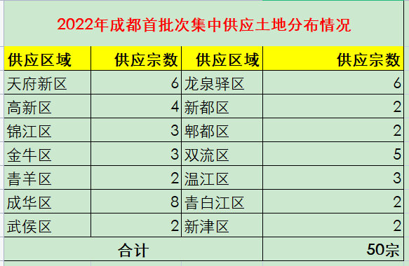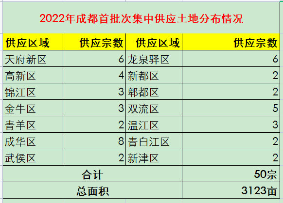 3月7日晚,成都2022年首批次集中供地公告发布,成都“12+2”中心城区共计50宗,总面积约3124亩涉宅用地将于本月底开拍。这也是继北京、福州、合肥、上海、厦门、青岛、武汉等地后又一重点城市发布2022年首批次供地计划。