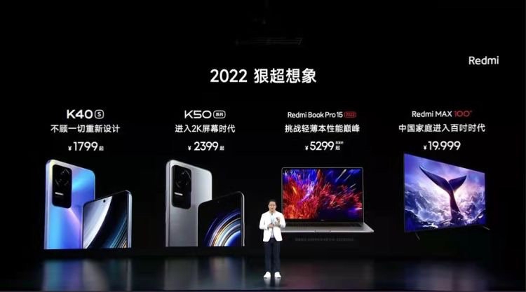 3月17日晚间,Redmi K50旗舰系列发布会在北京举行,一大波Redmi新品首发,包括售价不到两万元的高配高刷100英寸巨屏电视,搭载最新酷睿12移动处理器的高配超薄低价游戏笔记本,定位“硬核全能旗舰”的Redmi K50 Pro、Redmi K50系列旗舰手机,全新升级版Redmi K40 S,新款AX5400路由器,定制版的Redmi AirDots 3 Pro真无线蓝牙耳机。
