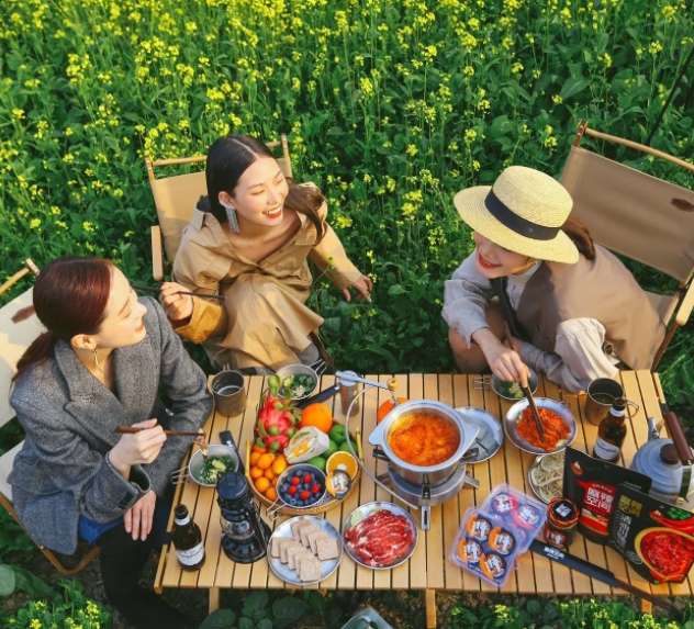 穿暖花开,露营出游成为热门话题,与露营、出游相关的餐饮、休闲零食、户外产品等更是迎来了一波销售高峰。3月中旬,一场“火锅+露营”为主题的跨界活动在大邑自由旷野营地举办,麻辣空间清油火锅推出露营底料大礼包,为露营野餐的消费者提供出行用餐的便利,收获了不少好评。