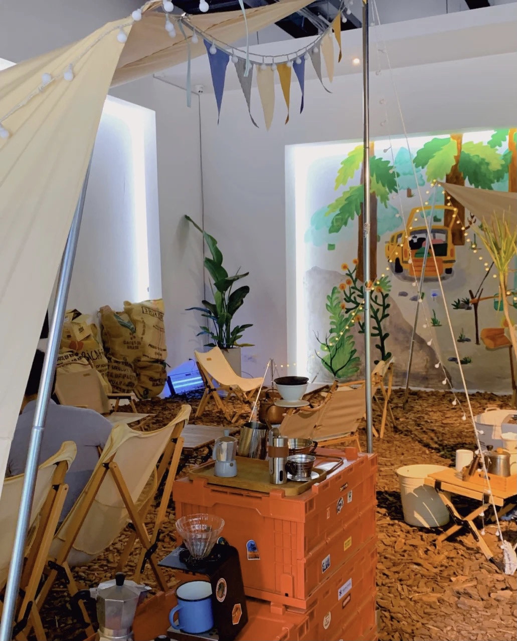 近两年,不止露营,茶饮、烘焙、酒店、便利店、加油站等业态,都在入局咖啡生意。咖啡走出咖啡馆,变成一种趋势,消费者不再拘泥于“咖啡馆内喝咖啡”。这也给咖啡店老板提供了一个新的思路:到顾客喜欢的地方去卖咖啡,甚至“搭建”一个顾客当下最潮流的空间。纯室内模拟露营,也是给足了消费者体验感,不用去户外,不用带装备,即可享受“露营”的快乐。