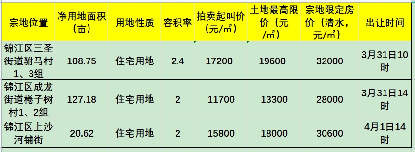 除了三圣乡这宗109亩纯住宅用地外,此次锦江区出让另外两宗地“成色”又如何呢?