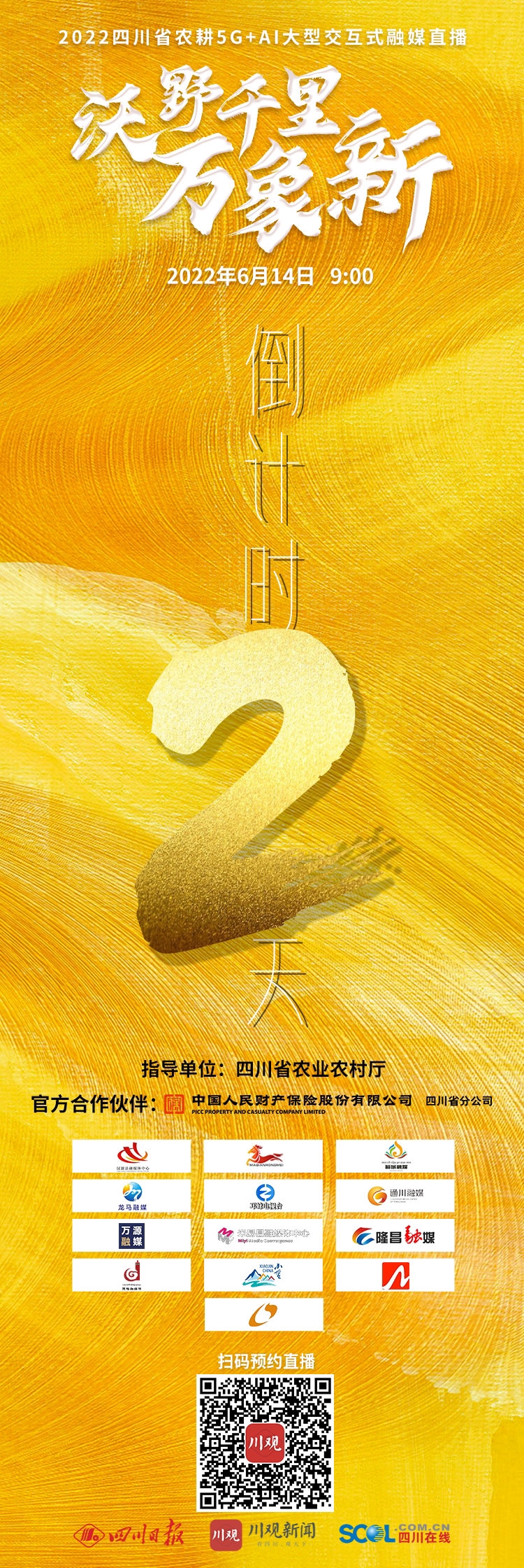 倒计时2天!《沃野千里万象新》2022四川省农耕5G+AI大型交互式融媒直播即将开启。