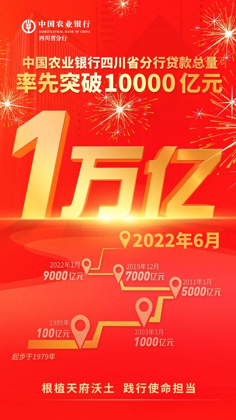 6月18日,农行四川分行各项贷款余额率先突破10000亿元。