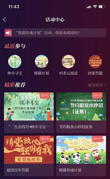 方式二:在四川在线首页,手指右滑进入“活动中心”,点击活动图片即可参与点赞;