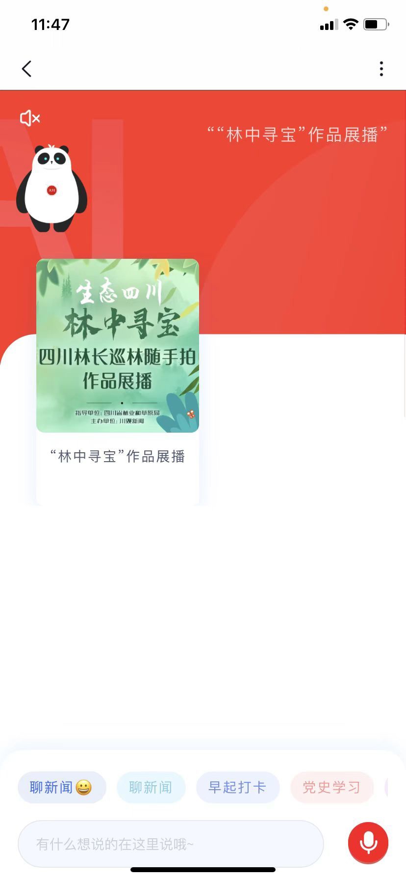 方式三:点击四川在线首页顶端右上角“大川机器人”,回复“林中寻宝点赞”,对话框将弹出活动图片,点击图片即可参与活动。