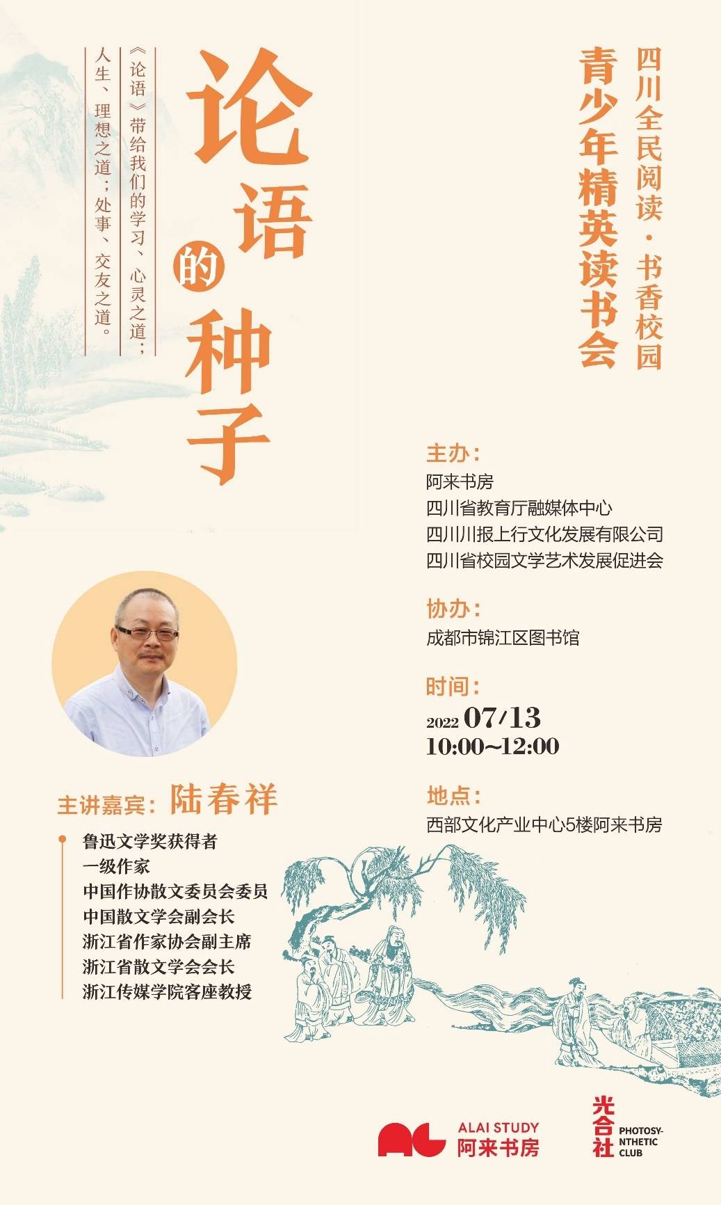 本次讲座的主题是“论语的种子”,主讲人是鲁迅文学奖获得者、中国散文学会副会长、浙江省作家协会副主席陆春祥,由四川省校园文学艺术发展促进会副会长、光合社阅读主理人赵娟主持。正值酷暑,“万瓦鳞鳞若火龙,日车不动汗珠融”,约100名来自成都各个学校的学生和家长顶着烈日来到阿来书房,跟随陆春祥老师走进2500多年前的春秋时期,体验一把“在孔子的座下聆听教诲”的感受。