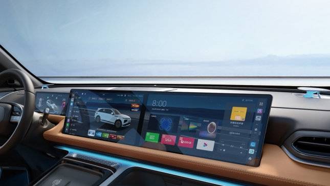进入车内,小鹏 G9 的环抱式设计从 IP 台延伸到后排座椅,营造更大的视觉空间感和环抱感。在科技加持下,小鹏 G9 内饰的设计完全摆脱功能定义造型的束缚,设计简约克制,但仍充满科技感和豪华感。