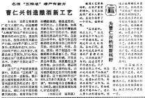 上世纪80年代,宜宾五粮液酒厂老工人曹仁兴创造酸醇酯化串蒸工艺,把优质品“五粮液”的出产率由以前长期保持的40%左右,提高到70%以上。这一创新在业界引发广泛好评,媒体也为五粮液的创新叫好,并呼吁行业加强酿酒工艺创新和交流提升。