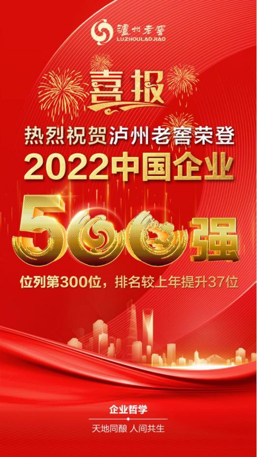 泸州老窖以营业收入790.14亿元,同比增长30.03%;利润总额147.10亿元,同比增长25.70%;资产总额3205.16亿元,同比增长17.00%等指标,再次入围“中国企业500强”,位列第300位,排名较上年提升37位,同时入围“2022中国制造业企业500强”,位列第139位,排名较上年提升17位。