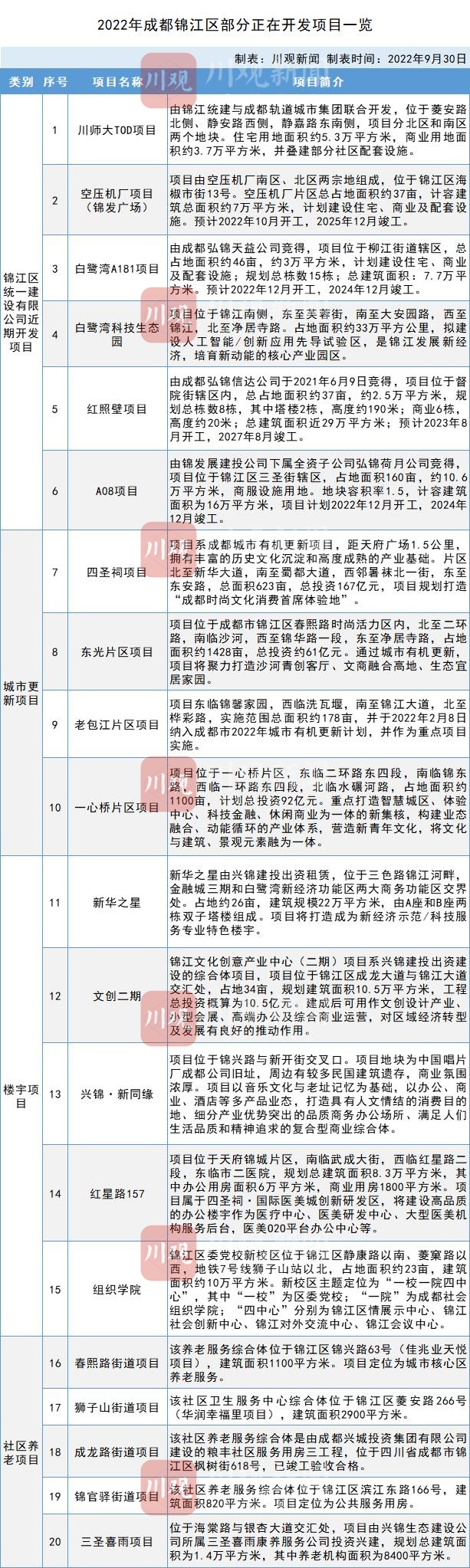 附:2022年成都锦江区部分正在开发项目一览(数据来源:锦江发展集团)