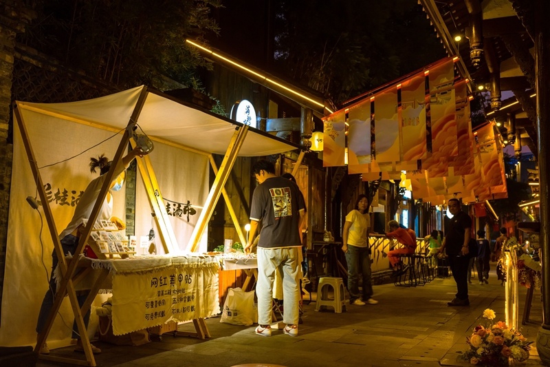 通过“兰桂酒市”活动的成功举办,历史文化底蕴深厚的黄伞巷在现代“创意文化”的助力下被赋予新的内涵。创意十足的花卉绿植和夜游体验装置构建起了“兰桂酒市”的惊艳视觉场景,融入体验场景之中的创意市集活动带来琳琅满目的特色商品令人目不暇接,弘扬在地文化的体验活动丰富了活动内涵,“兰桂酒市”让市民游客在国庆假期尽享一场集视觉、听觉、艺术、互动、市集、夜游、潮玩为一体的沉浸式文化体验盛宴。同时“兰桂酒市”活动还将整合网络主播、KOL等推广资源构建体系化传播矩阵,以直播等手段打破空间局限提升活动人气,让更多人在线上感受成都“酒文化”和“烟火气”的独特魅力。
