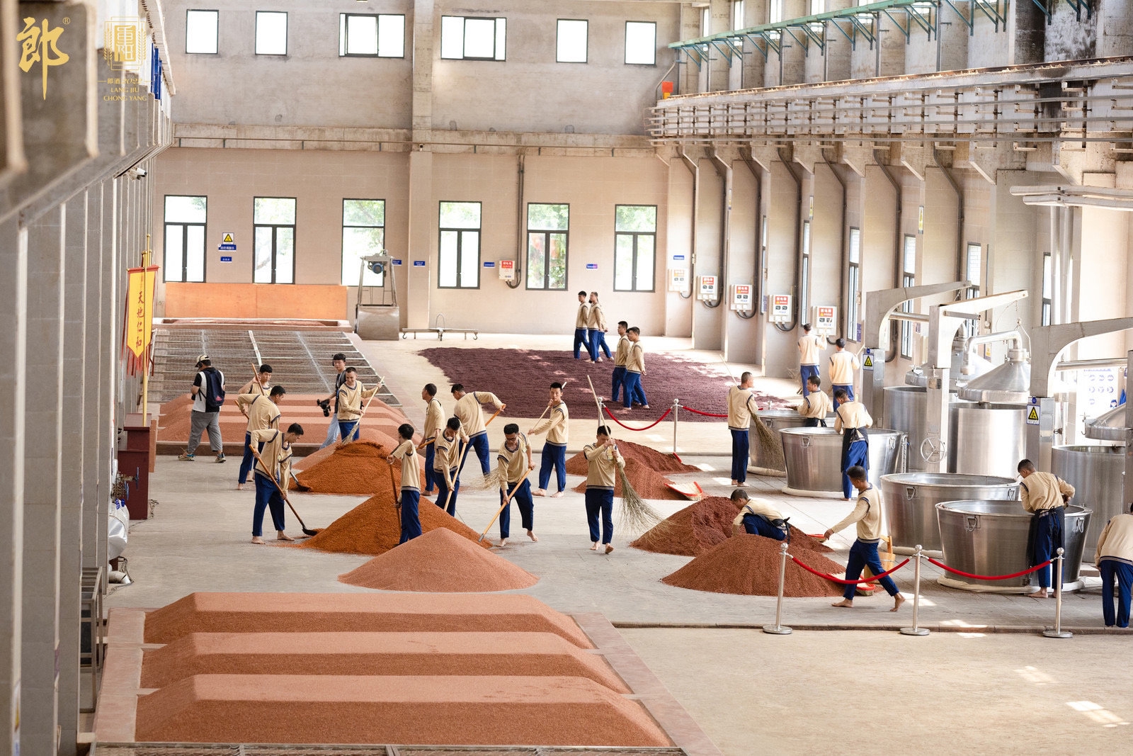 上午8点,酿酒工人张河准时来到位于吴家沟的生产车间,准备为参观下沙仪式的宾客演示传统的酱酒生产工艺。一小时后,上千名酿酒工人准时就位郎酒位于吴家沟、二郎滩、黄金坝、两河口、盘龙湾五大酿酒产区的生产车间。