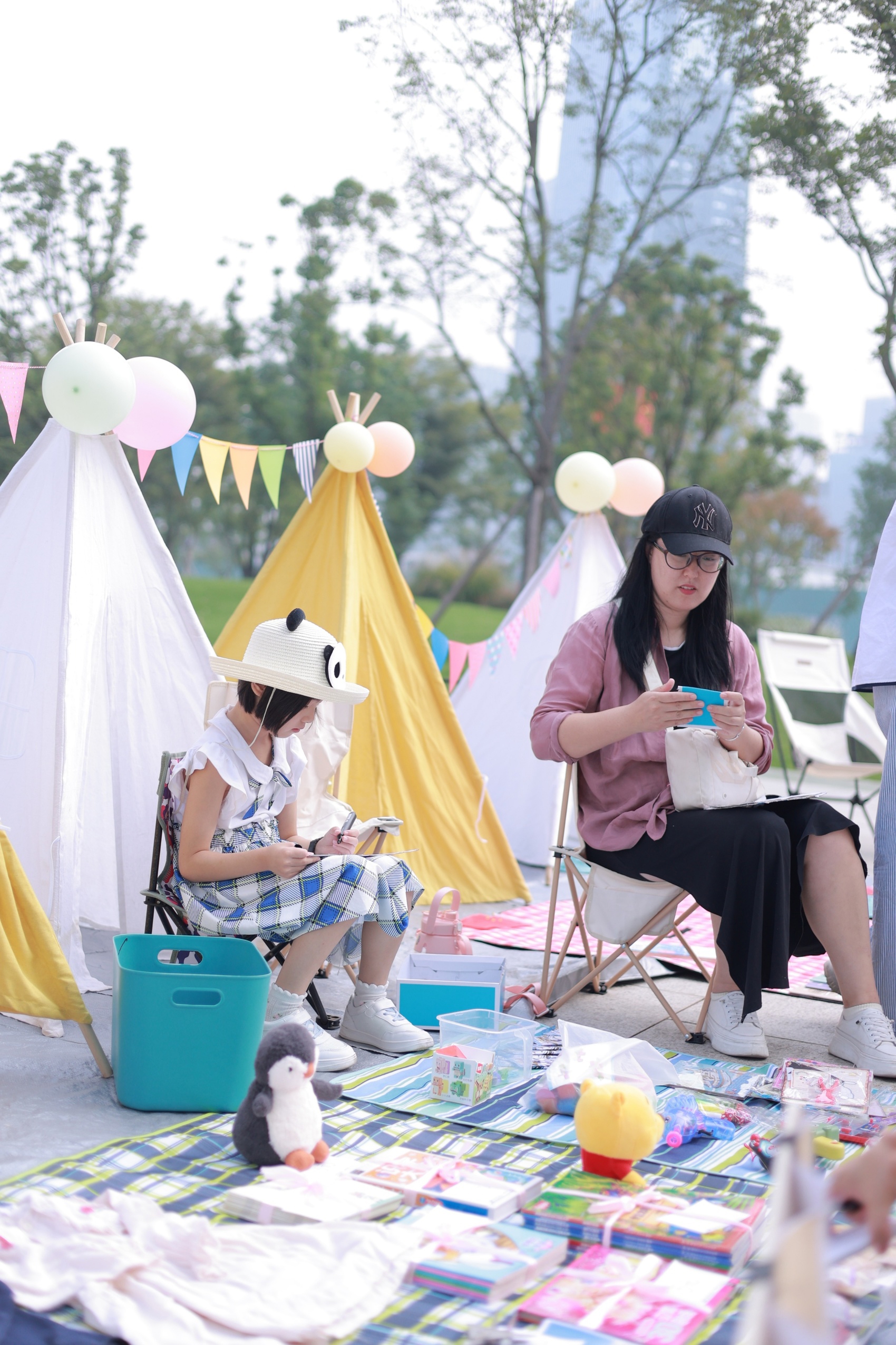 国庆假期头两天里,天府公园草坪上的百米画卷旁,围满了小朋友,每个人都用手中的画笔,尽情地描绘他们心中的公园城市,传递着对祖国母亲满满的祝福。小小萌娃们既当小画师,用画笔绘祖国风采,又化身小摊主,将出售闲置品的收入悉数捐给纳朗玛社区图书馆,以实际的公益行动为甘孜州的孩子们送去秋日“温暖”。