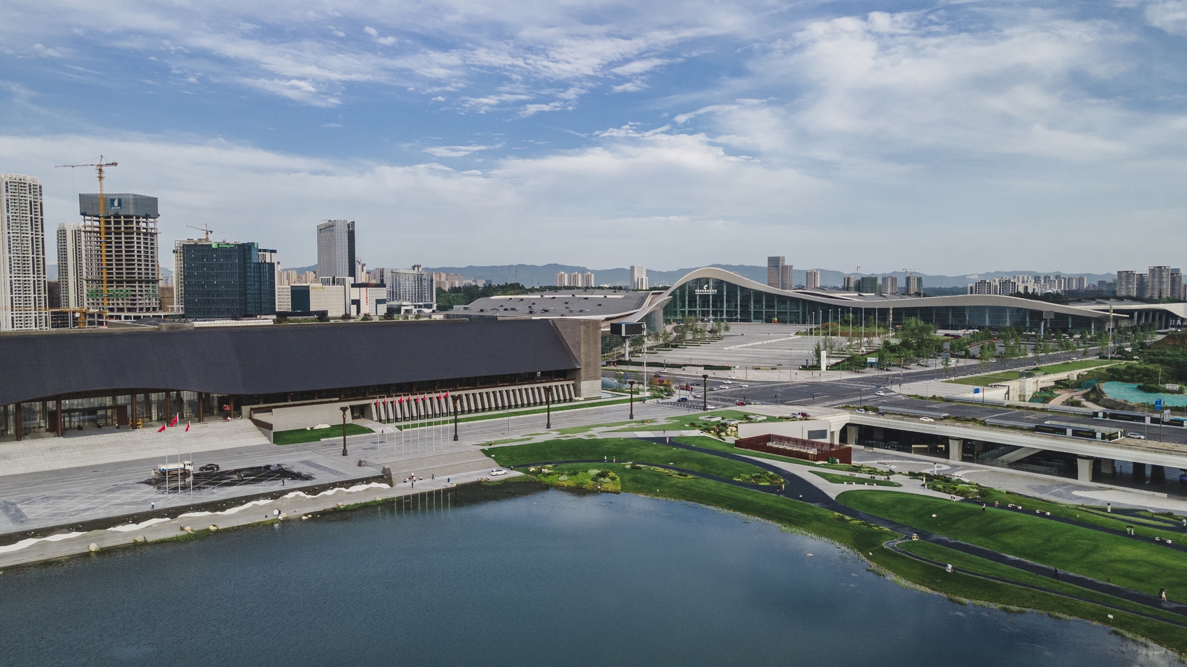 在有天府新区小“泸沽湖”之称的秦皇湖旁,天府国际会议中心是公园城市新地标。“天府你好 祖国万岁”儿童艺术市集活动,是秦皇湖商业街区的举办的首次活动。蓝天、青草、绿水,勾勒了公园城市的生态本底,望山廊、灰瓦檐、木结构檐廊,呈现了蜀山蜀水的独特文化。此次举办艺术市集活动是一次全新尝试,既创造了情景式、体验式、文化式体验为一体的消费体验,也填补了秦皇湖周边户外商业的空白。