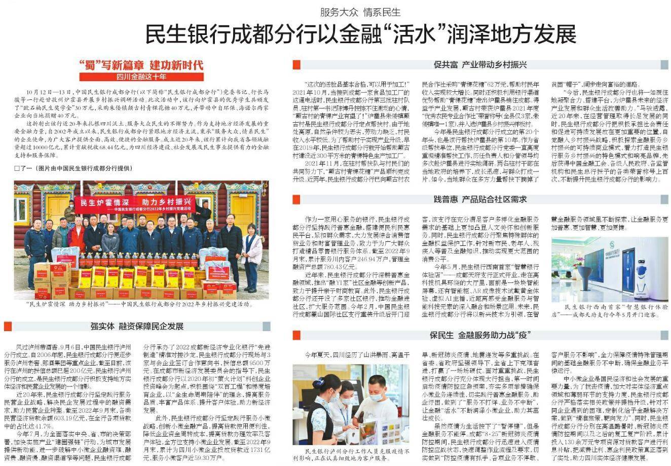 此外,民生银行成都分行坚定践行服务小微战略,创新小微金融产品,提高贷款使用便利性,降低企业资金周转成本,提高贷款办理效率及客户体验,全方位支持小微企业发展。截至2022年9月末,累计为四川小微企业投放贷款近1731亿元,服务小微客户近59.30万户。