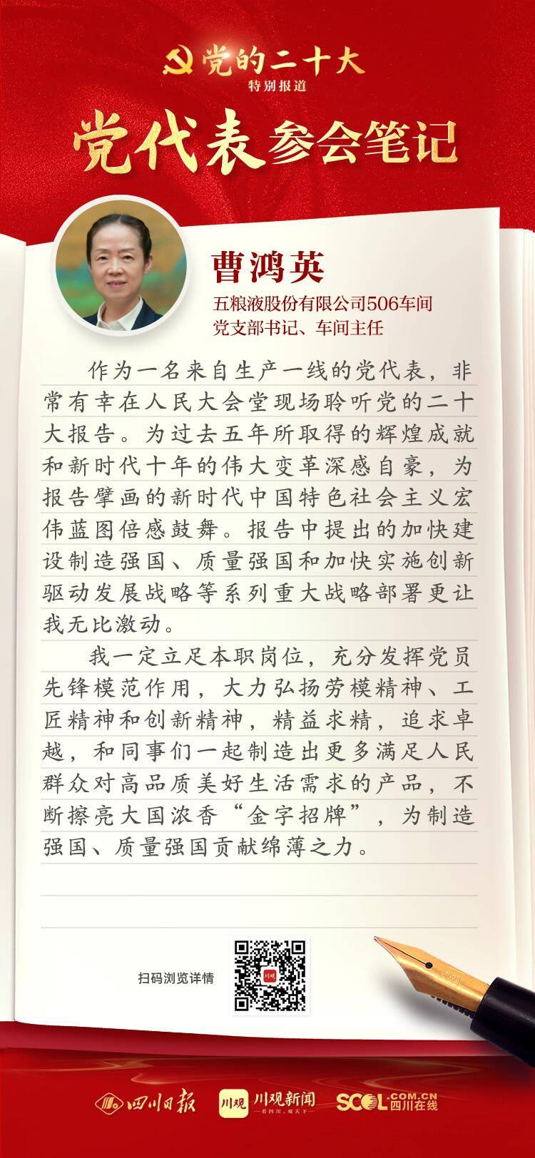 出席盛会,来自四川的党代表深感使命光荣、责任重大,大家认真履职,结合报告谈认识、谈体会、谈打算。川观新闻特此推出“党代表参会笔记”栏目,分享党代表们的参会心得,敬请垂注。