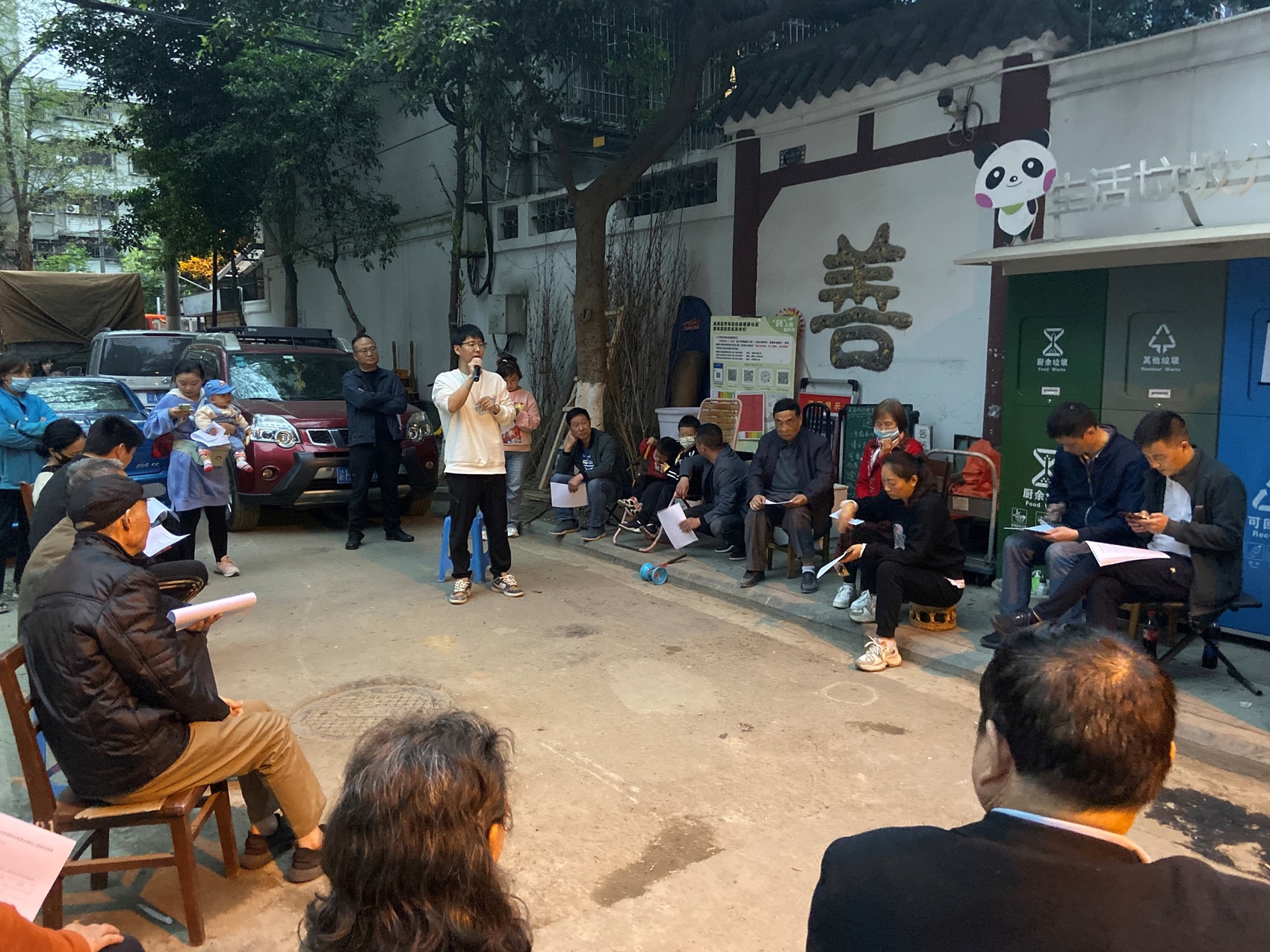 在确定“拆墙并院”工作目标后,为充分发挥居民主体作用,以居民改造意愿为导向,由蓓蕾社区牵头,两院院委会响应,合并组建了“拆墙并院改造小组”。