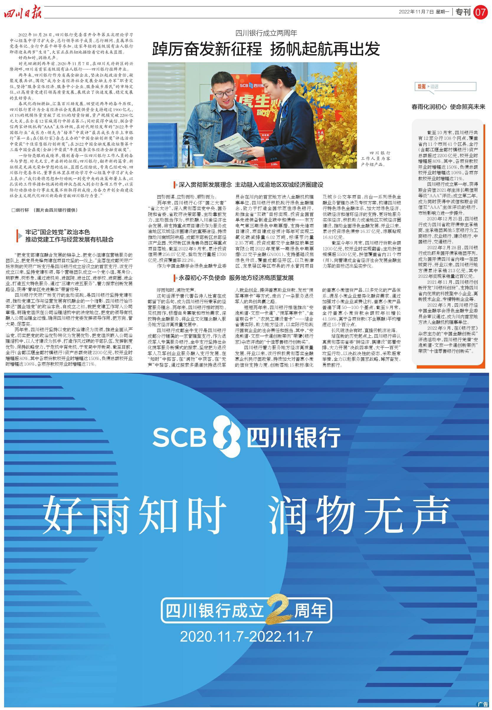 好雨知时,润物无声。时光回溯到两年前。2020年11月7日,在四川天府新区的兴隆湖畔,四川省首家省级国有法人银行——四川银行挂牌开业。