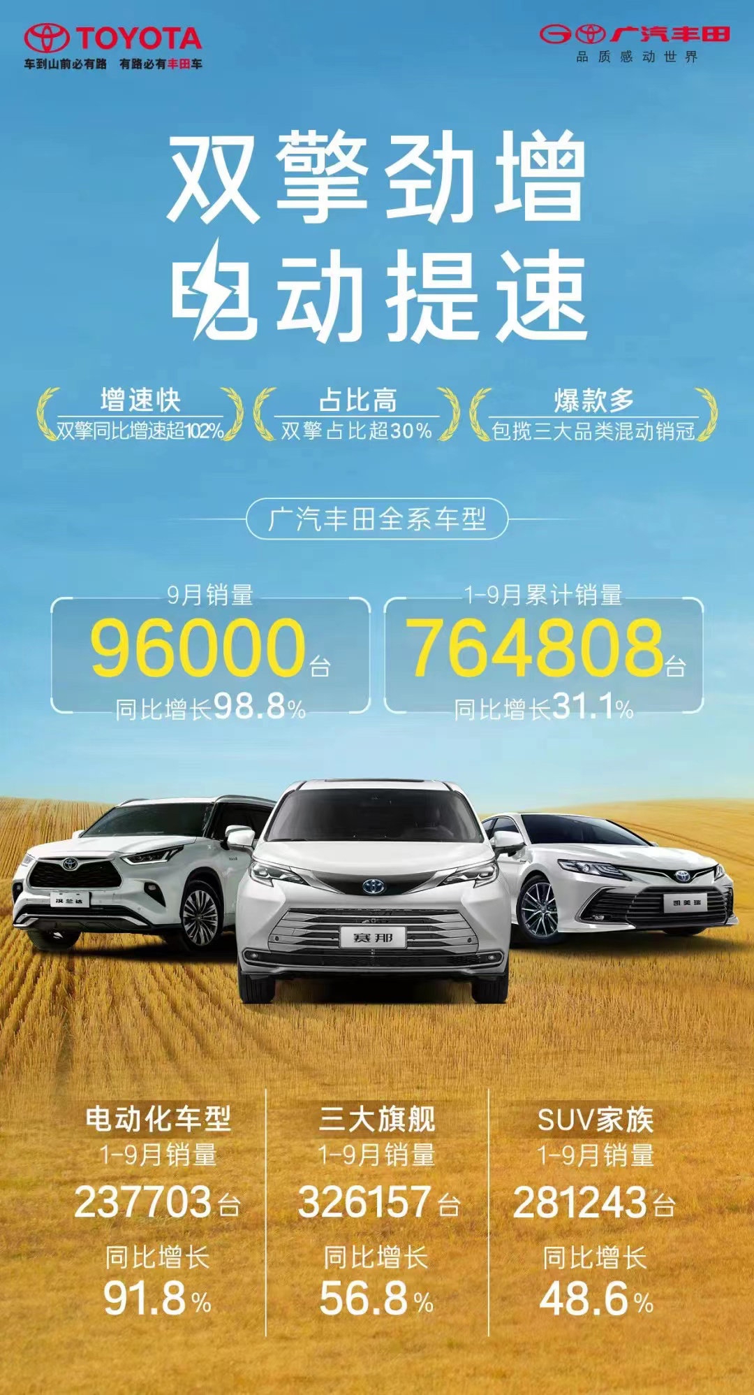 2022年,在汽车行业整体呈现下滑趋势的大背景下,1-9月,广汽丰田以76万台的销量刷新纪录。不仅如此,广汽丰田持续跑赢行业大盘,增速名列合资车企业前列,形成了良好的发展势能,成功跻身合资车企头部阵营,这无疑令合资传统车企倍感振奋,也为今后的发展提供了很好的范本和经验。