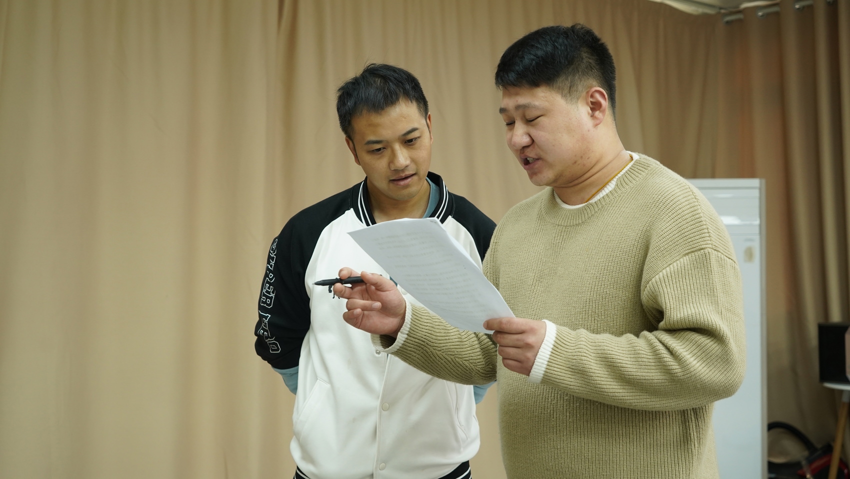 每一个选手都把宣讲内容当众宣讲了一遍后,张老师又指出大家共同存在的问题和需要注意的事项。随后张老师又带着选手观看前期录制的宣讲视频和宣讲脚本。每当看到脚本里词汇、段落中通过语言表达不顺畅的地方,张老师就与该选手一起对脚本进行小幅度修改,确保表达更加流畅。