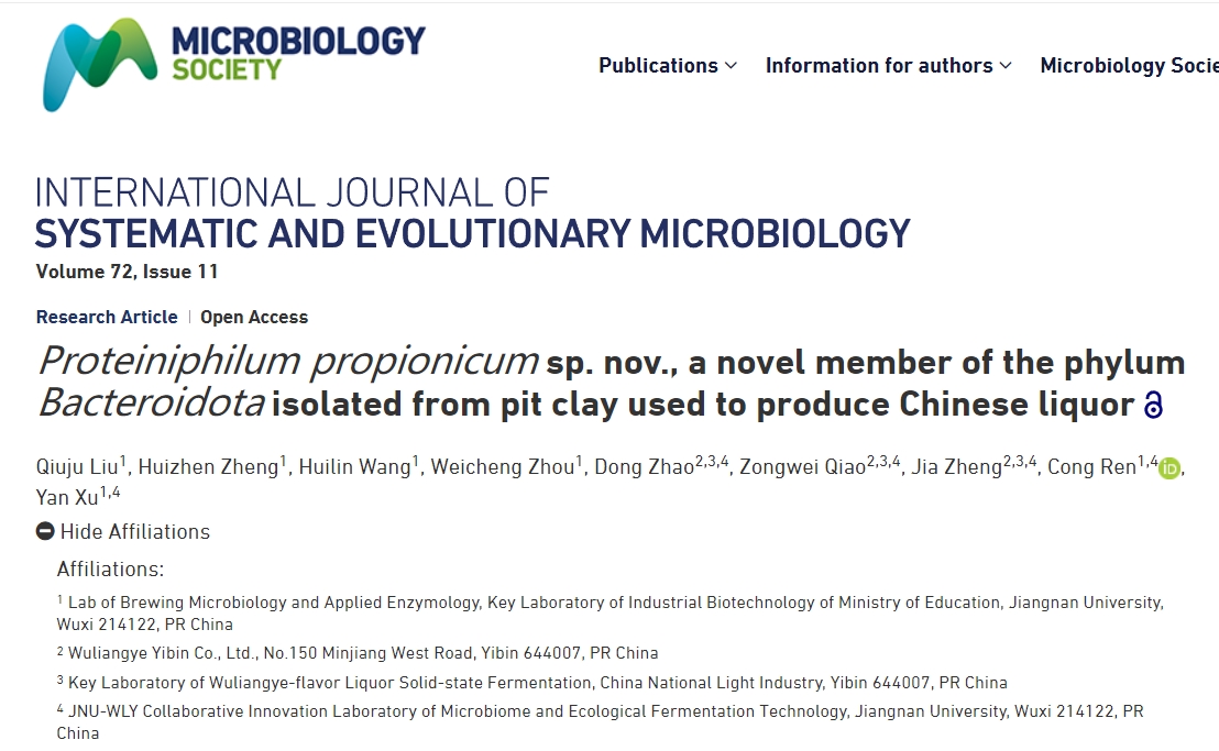 近日,五粮液股份公司技术团队联合江南大学教授徐岩团队从五粮液501车间654年窖龄的老窖泥中,发现一株拟杆菌纲全新菌种——代号JNU-WLY501,简称501丙酸菌。
