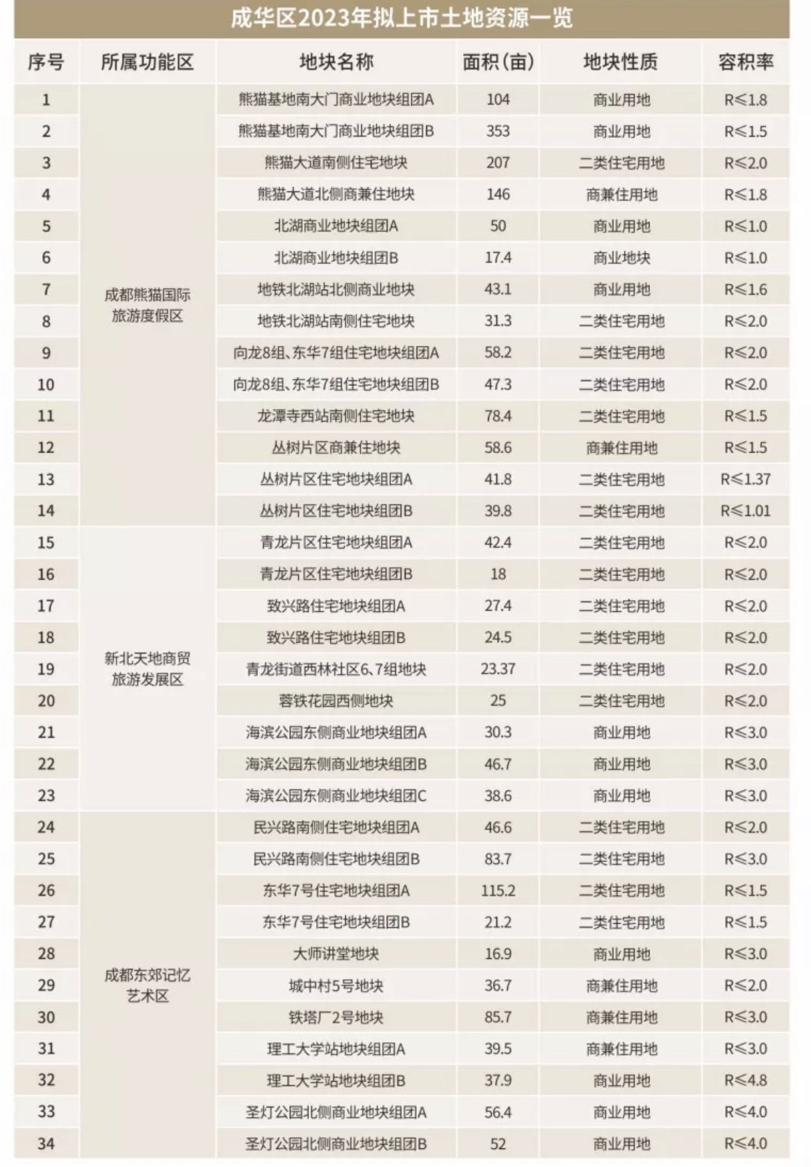 成华区在2023年仍将是成都主城区的土地供应主力之一。东郊记忆、二八板块、昭觉寺、北湖公园、熊猫基地等将是其中的热门供应板块。北湖未来公园社区作为成都市首批启动的25个未来公园社区之一,目前有首开地产、中国铁建新盘供应,人居地产也在此拿地,2023年将有3宗地上市,总面积约124.4亩,其中1号地块为二类住宅用地(兼容商业比例10%-15%),2号和3号地块为商业用地,值得重点关注。