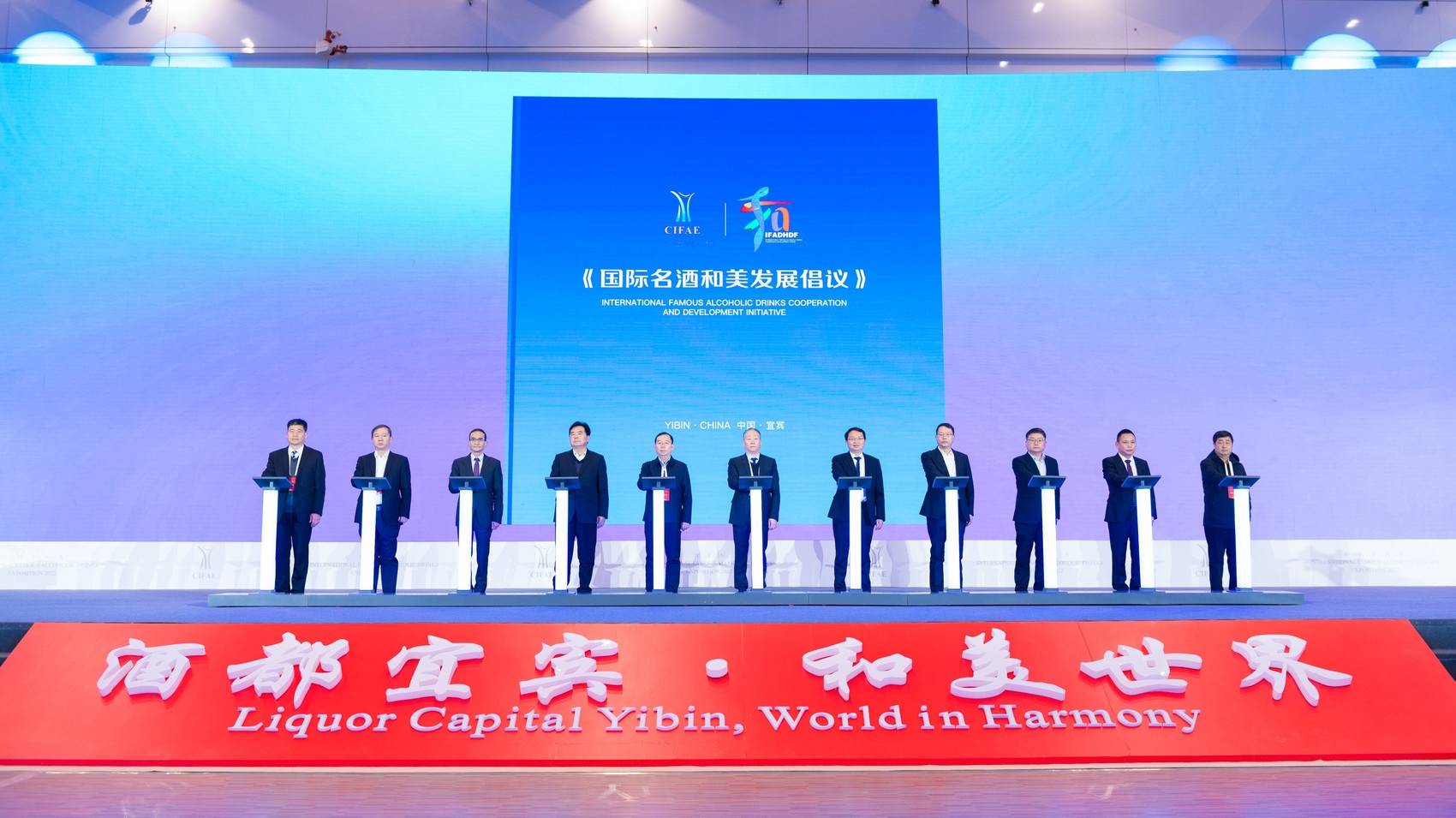 12月17日,酒都宜宾·和美世界——2022中国国际名酒博览会在四川宜宾开幕,来自五粮液、茅台、洋河、汾酒、泸州老窖及帝亚吉欧、保乐力加、百富门、人头马君度、富邑等国内外知名酒企代表,共同开启了一杯酒的“和美世界”。