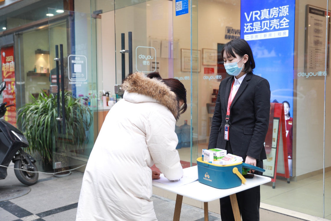 “我们门店就在小区门口,我们设立这个药箱的目的,就是希望小区里的居民,在满足自己用药需求的前提下,能向其他有需要的邻里提供支援和帮助。”百花西路一富房门店负责人卢国毅说,他们之所以做这个活动,是响应贝壳的社区药品互助的倡议,利用自己门店扎根小区的优势,为小区做点力所能及的实事。