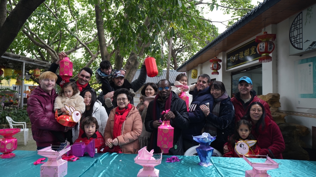“小朋友们快来做彩灯啦。”胡氏花灯传承人万玲带我们走进了胡氏花灯文化园。从一根丝到一盏灯需要经过5个工种、13道工序的制作。在绿荫掩映的小院里,两排长长的木桌上放满了彩灯。先把胶水糊在做灯笼的锦缎上,再将锦缎拉直放平,轻轻地放上去。胡式花灯传承人万玲亲自带着小朋友们做花灯,体验自贡彩灯的制作乐趣。“我想做兔子彩灯。”来自中美跨国家庭的杨钰程拿起画笔,在兔子灯上添了一对可爱的眼睛。离开文化园时每位小朋友手上都喜气洋洋地提上了精美的自贡彩灯。