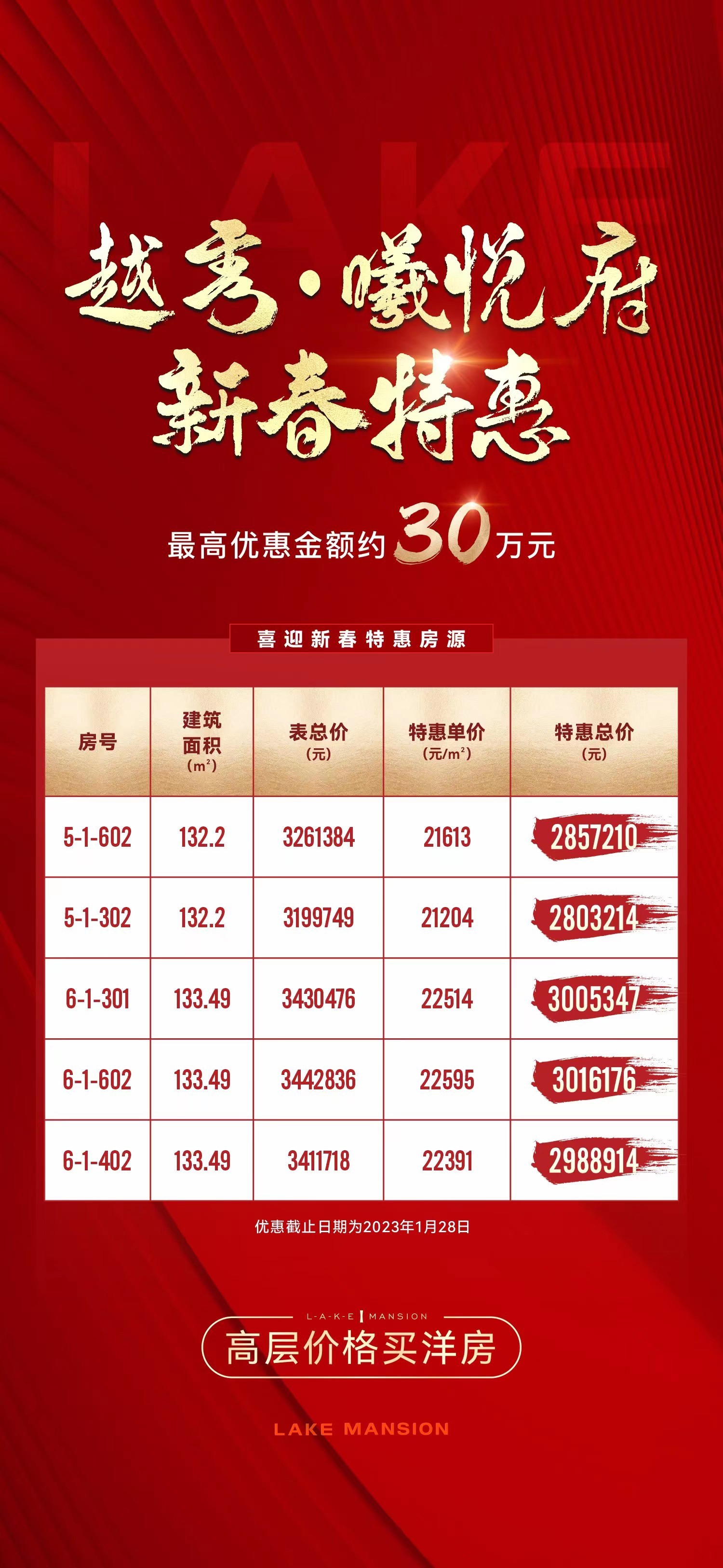 据双流怡心湖板块的越秀·曦悦府项目置业顾问介绍:“我们项目目前主推面积约133㎡的清水洋房,春节期间将推出特惠房源、业主专享年货礼包等活动。”