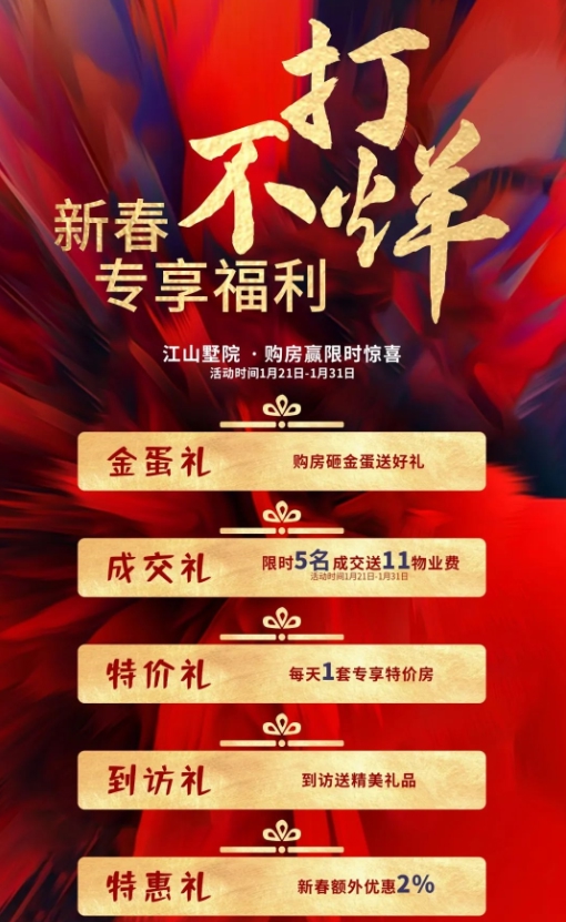 据了解,成都龙湖15个在售项目售楼部春节期间都正常开放,并推出种类不同的迎春活动,包括到访抽红包、买房免费游三亚昆明、买房送车位、特定房源立减优惠等。华润置地成都14个盘联动,推出全民营销活动,推荐成交可享现金奖励。兴城人居成都20多个楼盘推出不同福利活动,如特惠房源限时抢,老带新推荐成交有奖,新春购房享额外优惠,参与线上游戏赢取新年大礼包等。