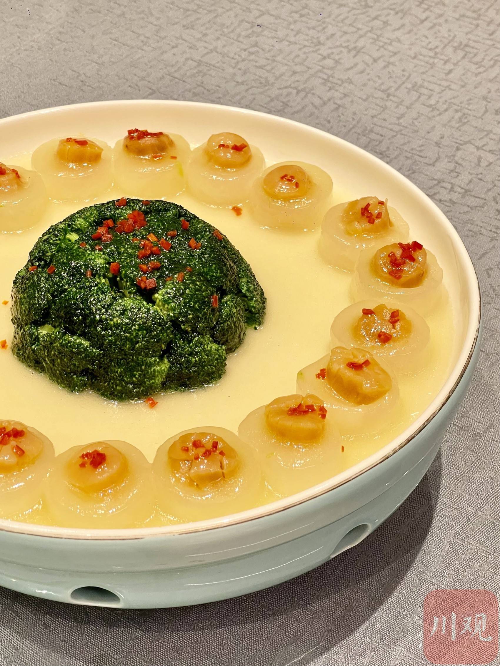 玥轩中餐厅推出寓意“金玉满堂”的经典粤菜“玉环瑶柱脯”。四川在线记者 赵泽宇 摄