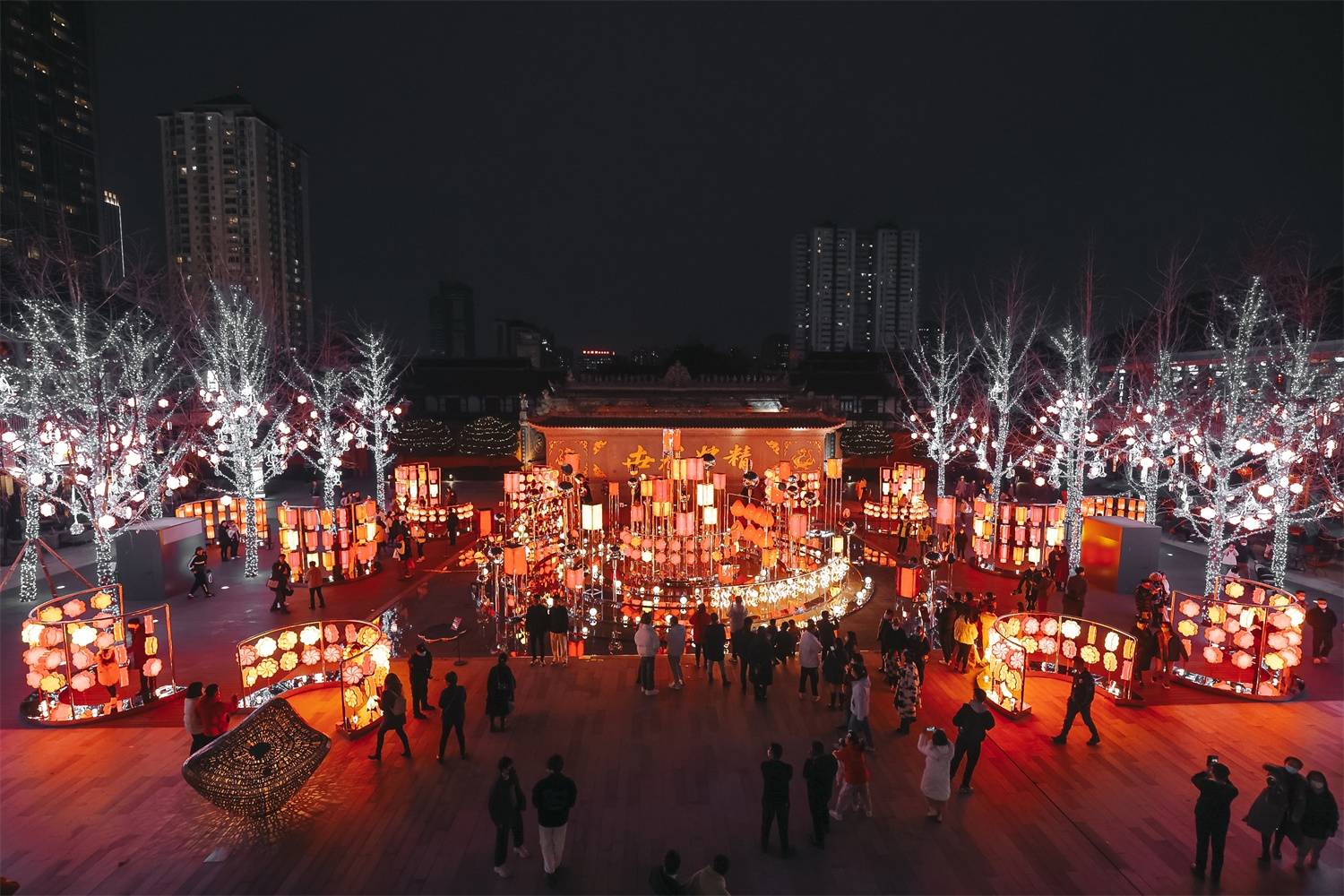 夜幕降临,成都核心商圈内,市民和外地游客在“福蓉新春”新春主题活动现场打卡。成都远洋太古里供图