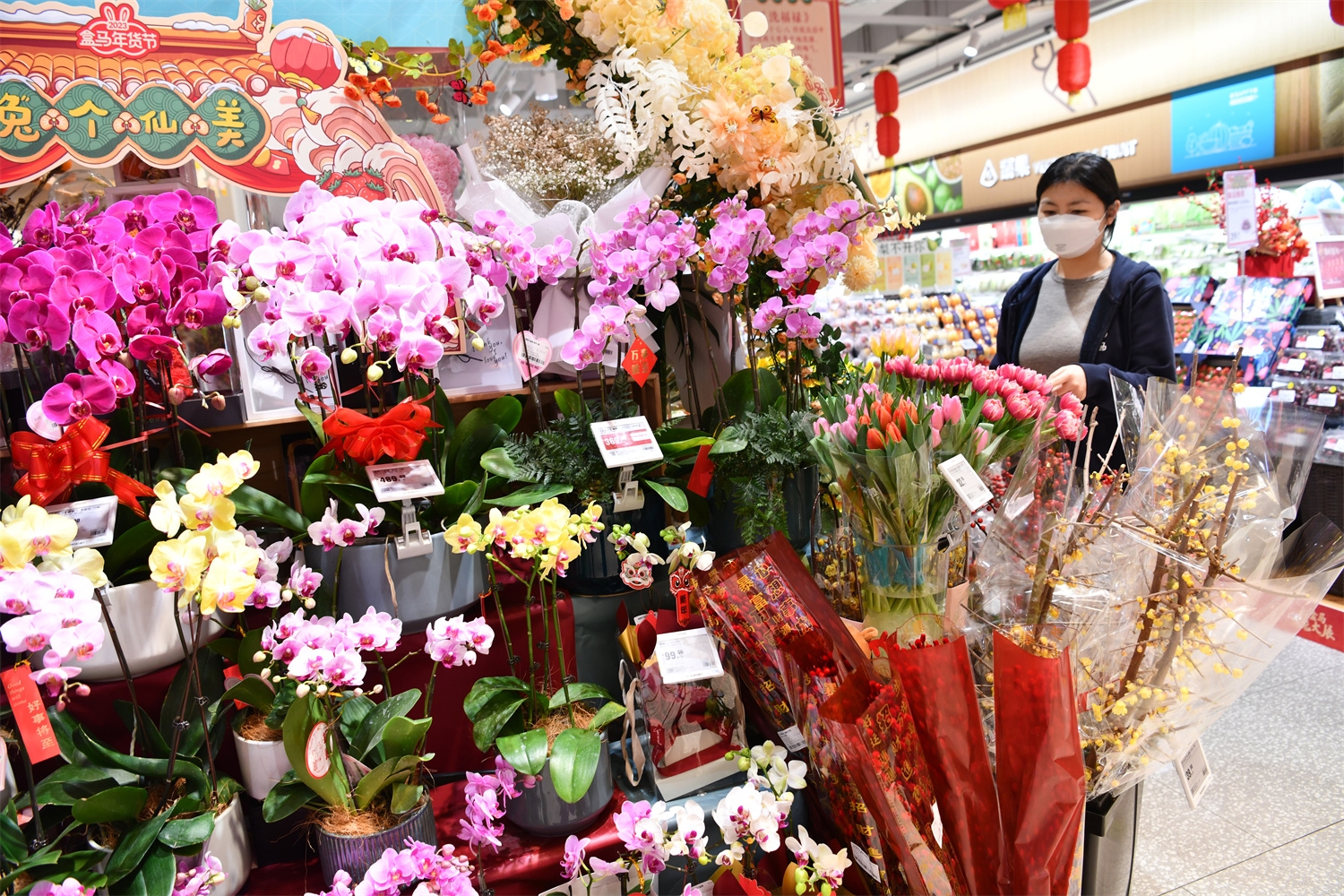 近80款年宵花在成都线下商超热销,素心腊梅受欢迎。盒马供图
