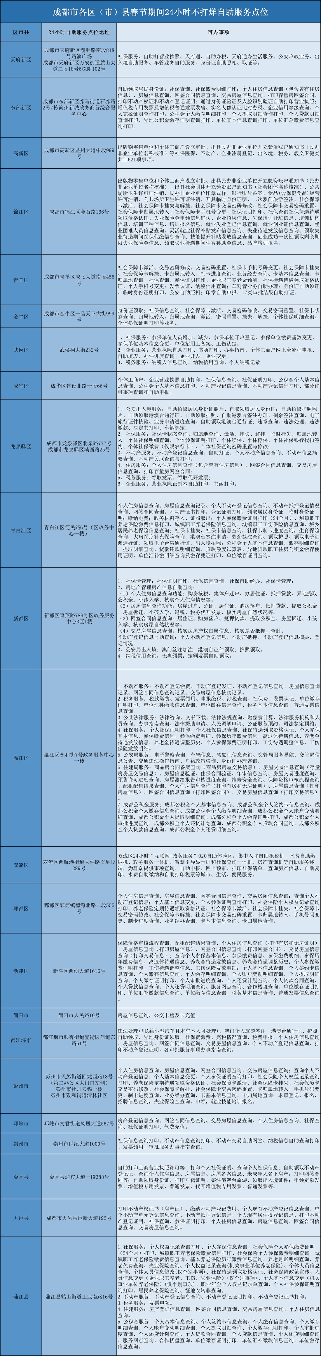 附:成都市各区(市)县春节期间24小时不打烊自助服务点位↓↓↓