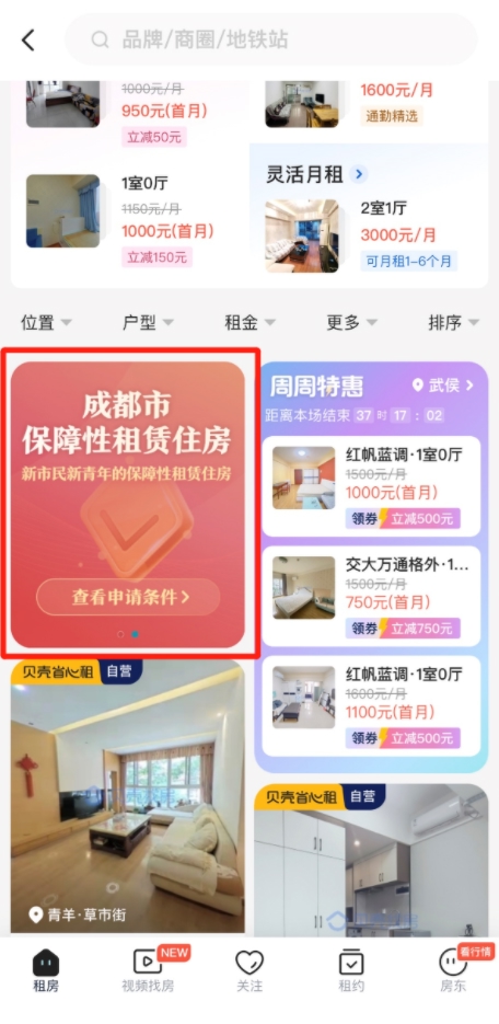 贝壳找房APP面向成都地区上线的成都市保障性租赁住房频道