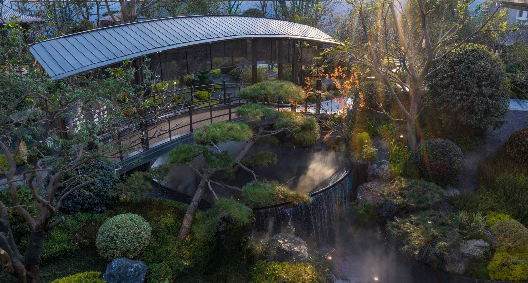 位于金牛区的香港置地·瑰云里,打造的度假式园林独具特色,55米宽的星空顶大门、“普拉达绿”石材景墙搭配灵动水景,让购房者流连忘返。