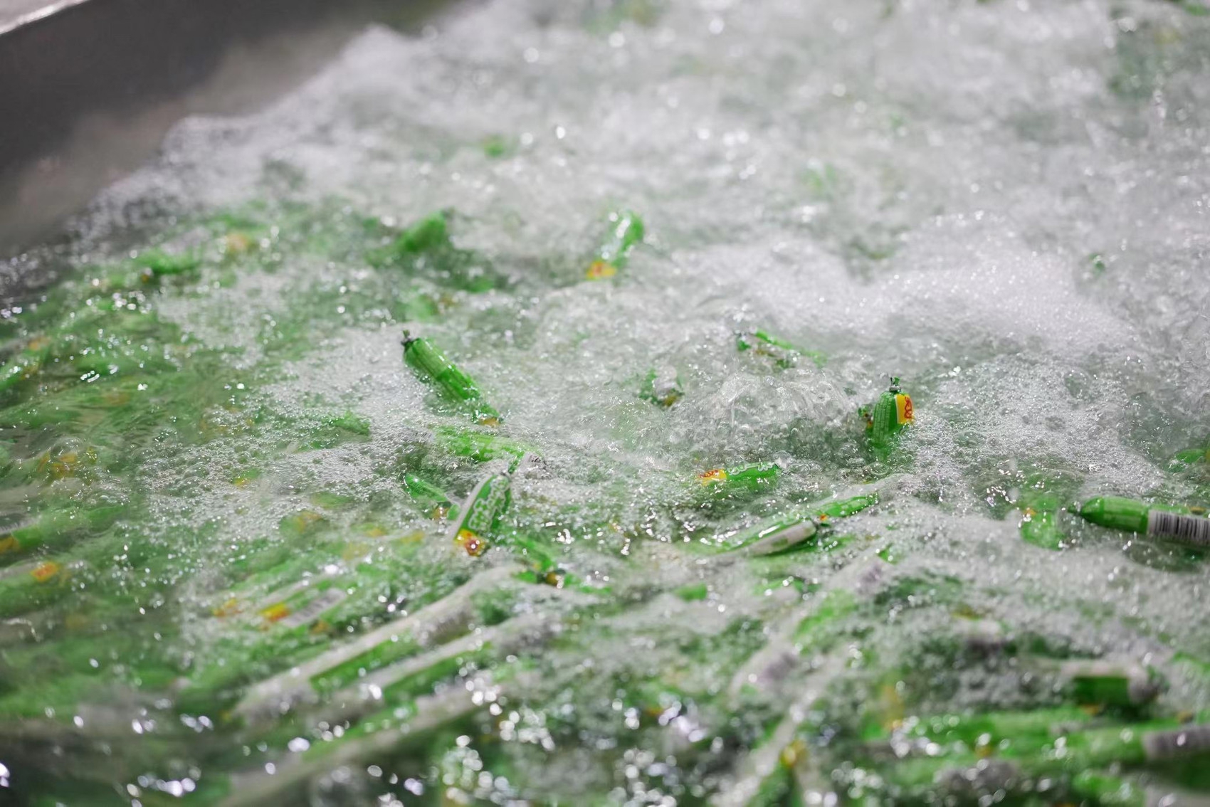 “这就是美好火腿肠‘诞生’的全过程,我们现在走的这条长长的通道,能看见火腿肠生产的每一个环节。”成都希望食品工厂车间主任张建明介绍到。记者在现场看到,成都希望食品工厂生产线上修建了一条可视化参观通道,透过巨形的玻璃窗,能清楚的看到火腿肠生产的全过程。“生产一根美好火腿肠需要3个半小时,工厂一天能生产160-180吨火腿肠。”张建明说。