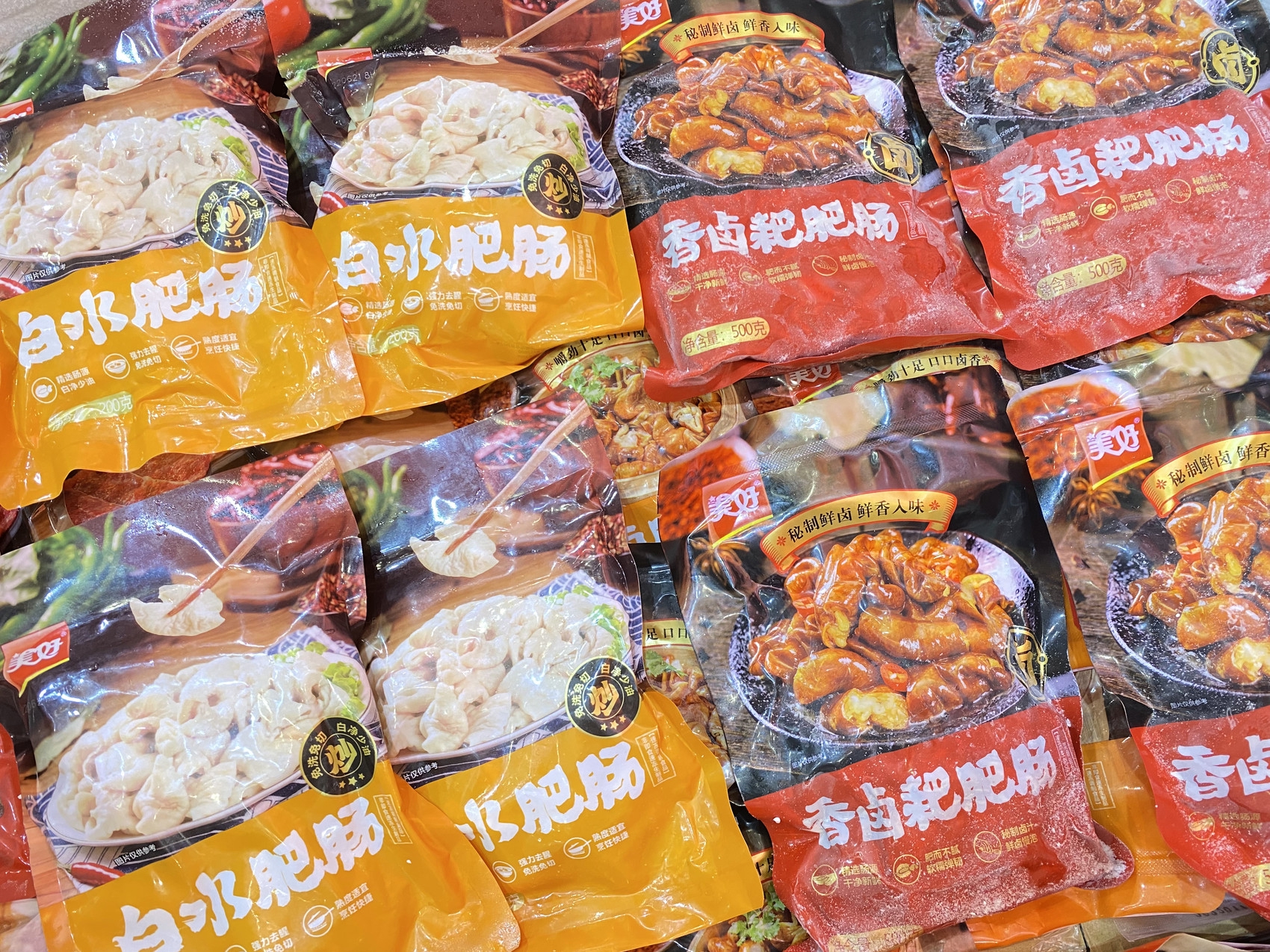记者在成都希望食品工厂产品展厅里看到,除了火腿肠、鸡肉肠、午餐肉罐头外,美好农家小酥肉、美好肥肠系列等旗下明星产品也位列其中。据介绍,美好小酥肉凭借13亿的单品销量,开启了美好食品继火腿肠之后的特色菜预制品类新篇章。而美好肥肠系列产品在2021年底上市后表现亮眼,已突破亿元销量,成为了美好农家小酥肉之后另一个亿元矩阵产品。