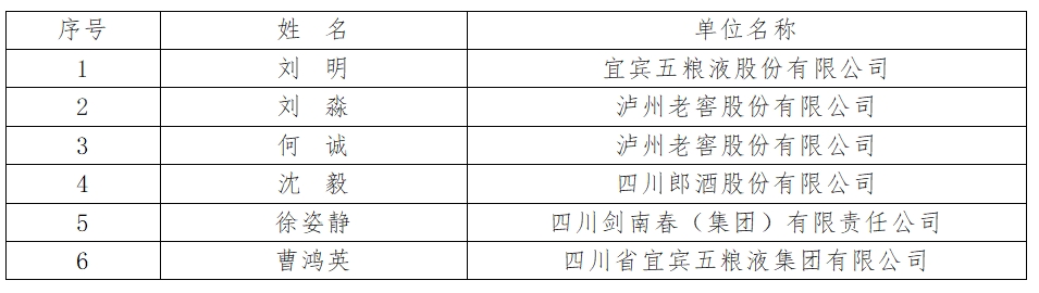 第三届“中国酿酒大师”四川获评名单(以姓氏笔画排序)