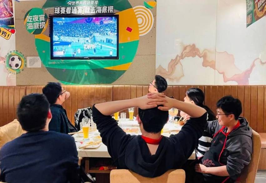 世界杯期间,顾客在海底捞吃火锅看球赛。海底捞供图