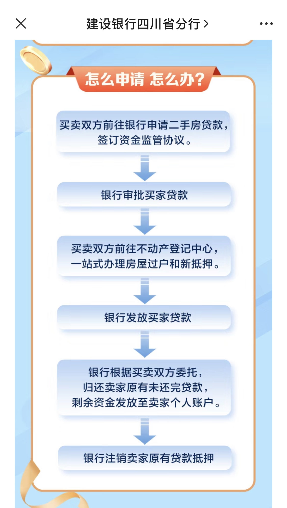 建行“带抵押过户”二手房贷款产品申请办理流程(图据建设银行四川省分行官微)