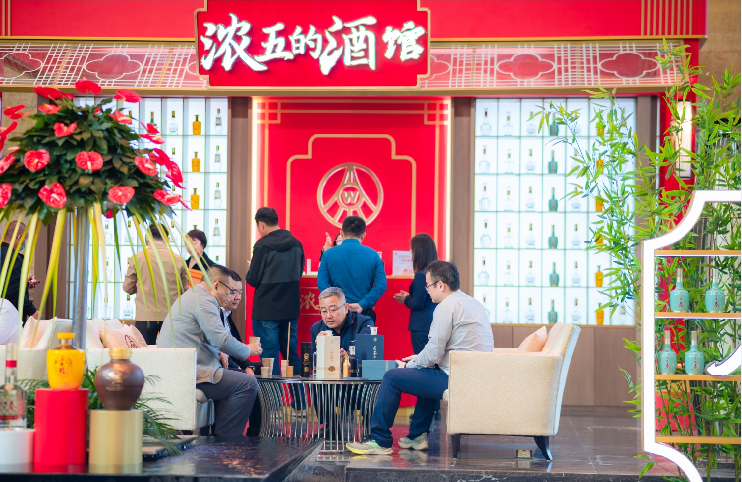 展厅现场,五粮液还设置了酿造工艺区、五粮浓香展厅、圣山展厅、五粮液酒廊休闲洽谈区以及浓五酒馆等。其中,依托酒店原有外立面精心搭建的酿造工艺区,典雅大气,令观展客商们在融融春意中驻足徜徉,深刻了解一杯“大国浓香”的诞生奇旅,感受岁月浓香的独特魅力,陶醉于和美五粮的品牌魅力,折服于大国浓香的品牌自信。值得一提的是,本次五粮液酒店展更注重服务性和体验感,倾力打造的休闲空间和品牌长廊,不仅方便全国各地经销商前来洽谈业务,也方便他们近距离感受五粮液品牌文化。