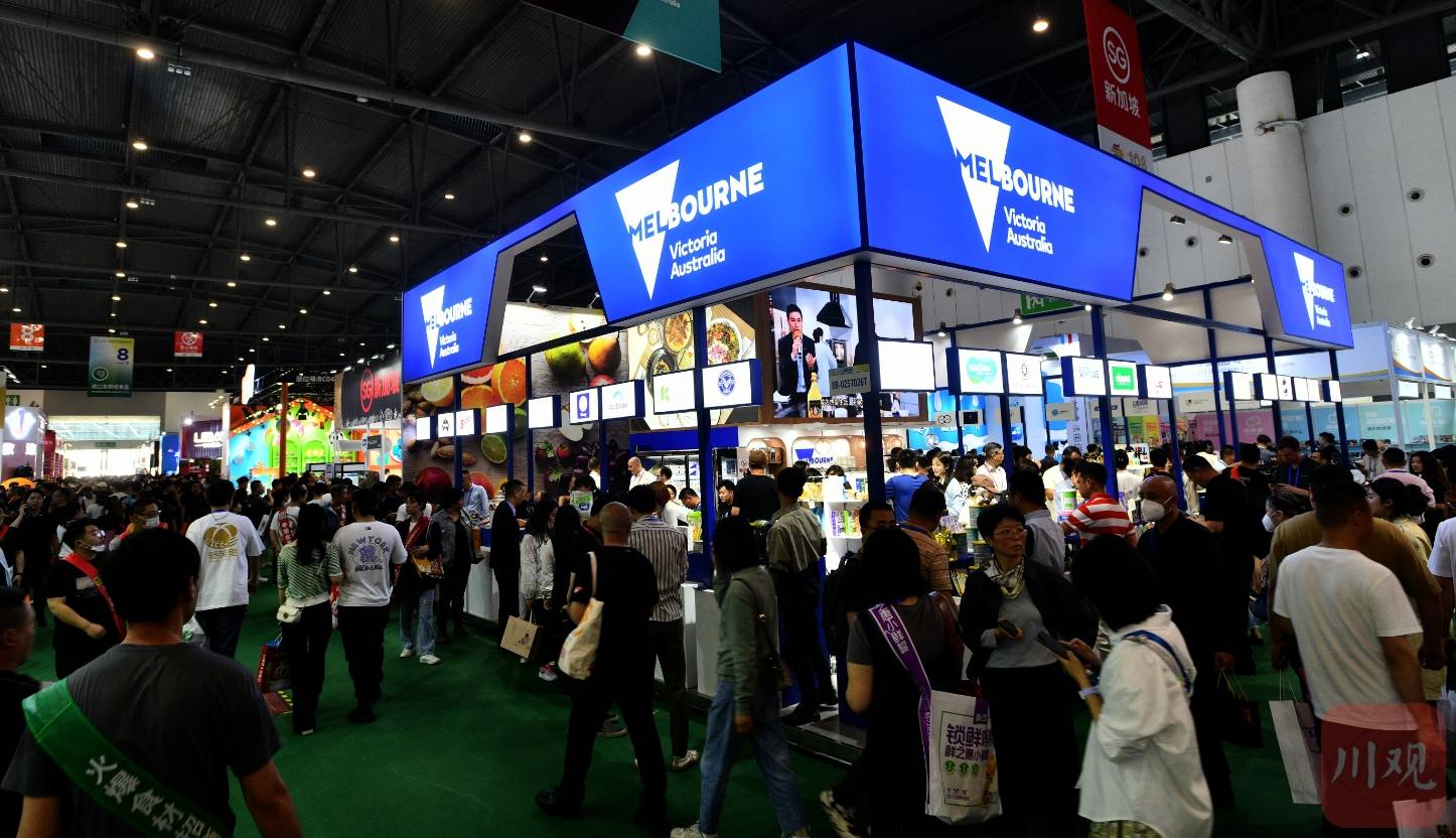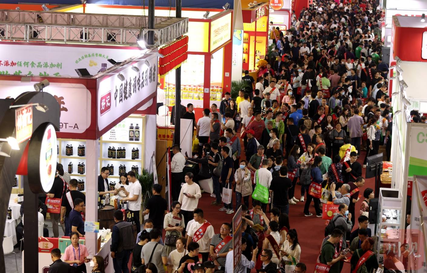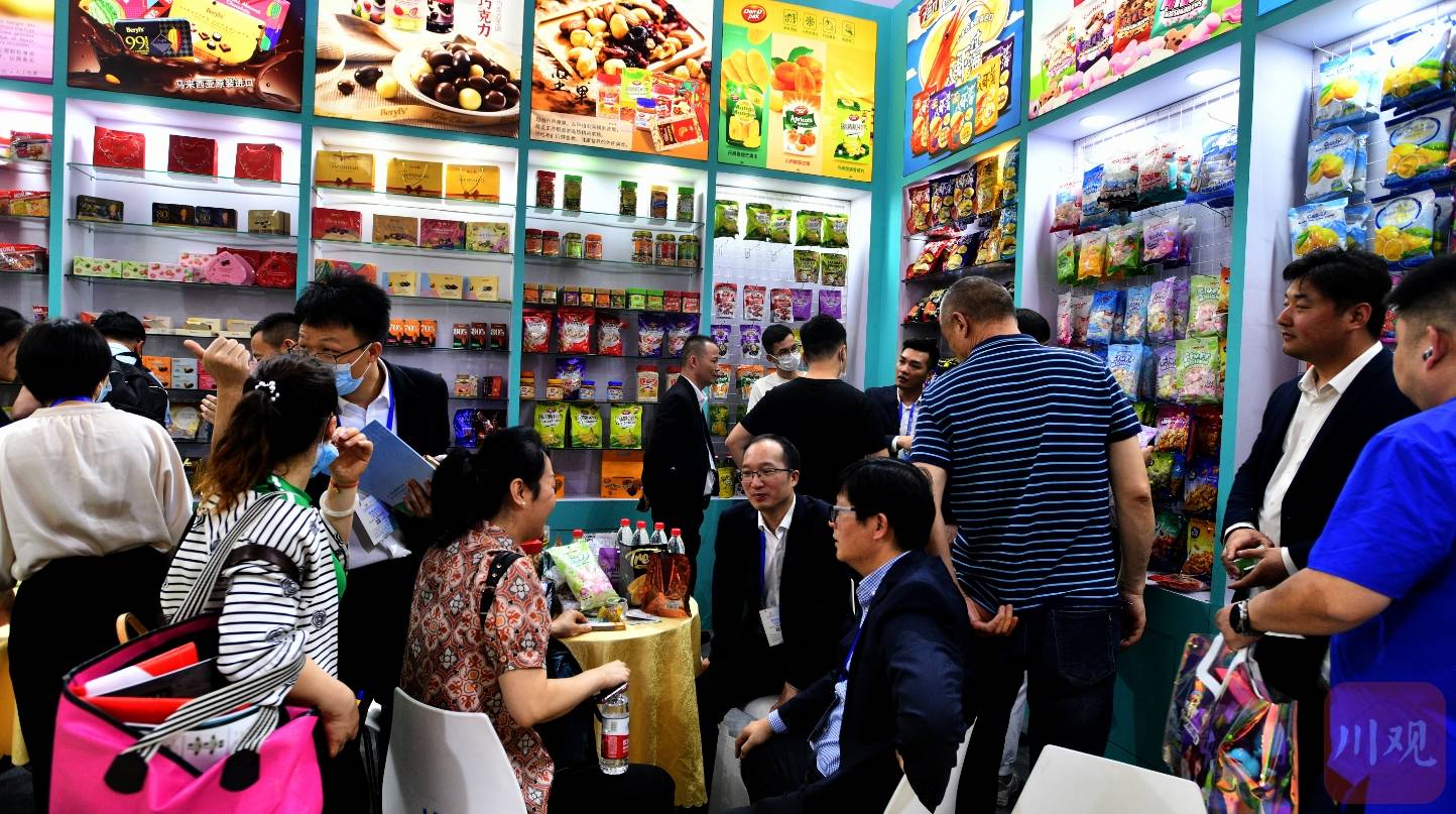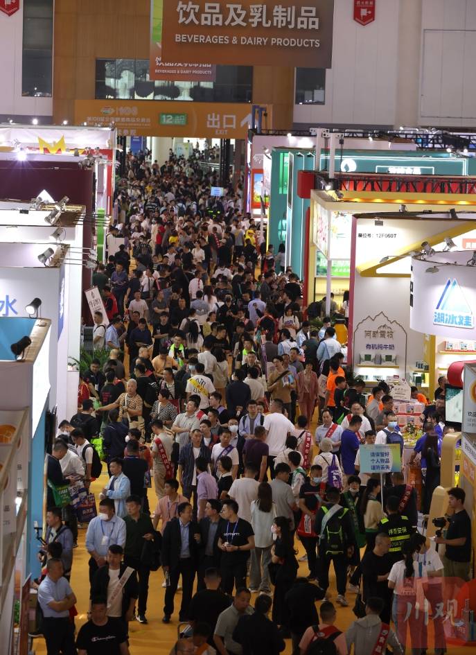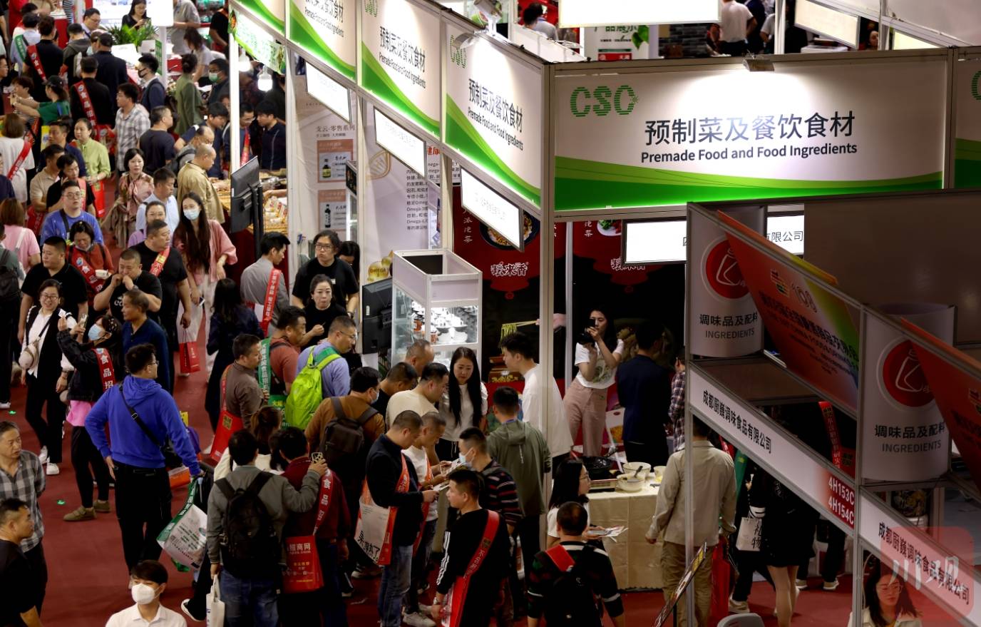 在成都西博城展馆,火锅底料、预制菜、休闲食品摆满展台,前来逛展、购物的市民人潮涌动,来自全国各地的食品企业、经销商不时坐下洽谈……