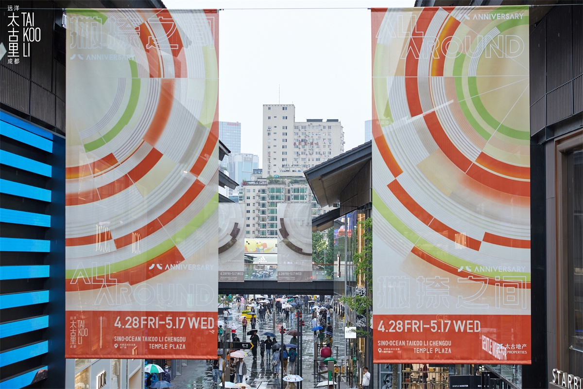 4月28日,成都远洋太古里迎来八周年庆,揭幕“撇捺之间ALL AROUND”成都城市生活艺术体验展(以下简称“展览”),活动将持续至5月17日。