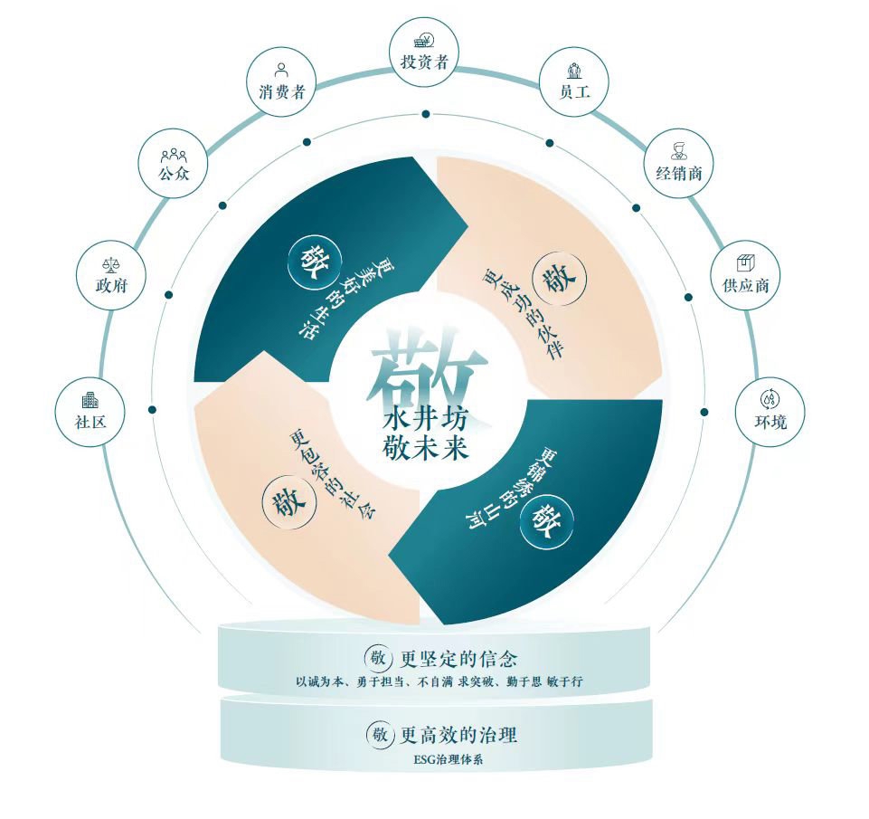 这份报告是对水井坊ESG实践的总结,也是对未来行动的指导和承诺。从建构“水井坊·敬未来”ESG战略,到制定涵盖ESG治理十大领域的26项具体可持续发展目标,水井坊的ESG旅程正稳步向前。水井坊代理总经理艾恩华表示,面向未来,水井坊将持续动态评估企业发展面临的ESG风险,主动应对变化。面向未来看今朝,推动水井坊健康、稳健、高质量发展,致力于为中国经济和社会的可持续发展贡献一份“水井坊力量”。