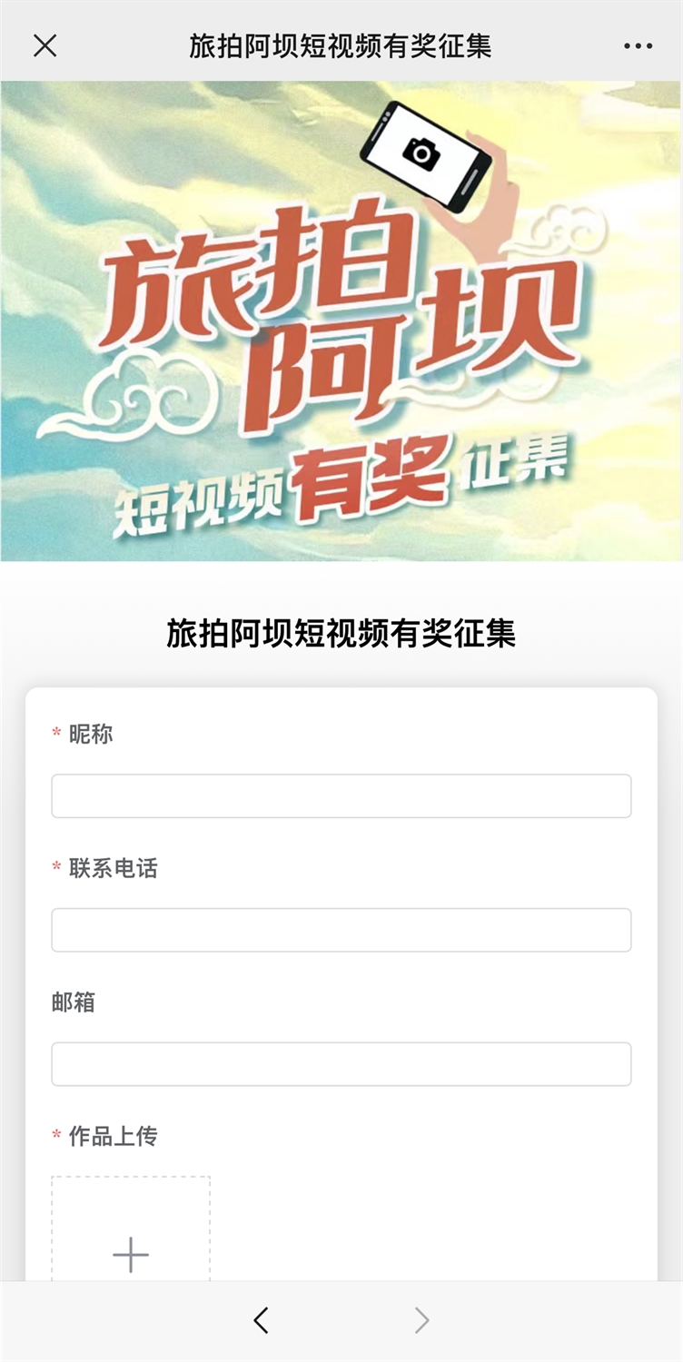 据了解,在旅拍阿坝活动集中走进景区的同时,“扫码一键上传作品”(以下简称“一键上传”)功能同步开启,参与者用手机扫码进入作品上传页面,仅需填写昵称及联系方式等信息,即可参与有奖征集活动。